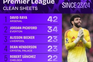 體育資訊2月8日訊 阿森納在本輪英超3-0完勝桑德蘭,數(shù)據(jù)統(tǒng)計(jì)顯示,拉亞是近3個賽季零封次數(shù)最多的英超門將。