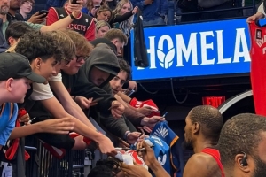 賽后,杜蘭特為雷霆主場的球迷們送上簽名。