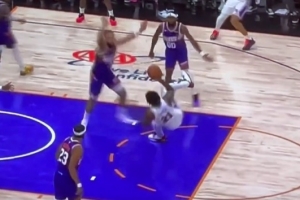 GIF-恩比德夸張假摔把太陽球員整崩了
