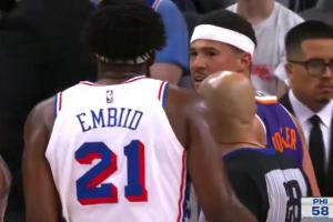 布克回頭噴恩比德:“我打的全是球,尼格。全是球,尼格。”