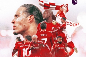 利物浦官方社媒發布了為此役制作的海報,范戴克、薩拉赫、?;倏恕Ⅺ溈ɡ固?、維爾茨、加克波、科納特、索博斯洛伊出鏡。