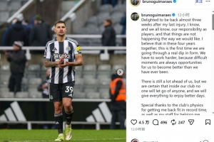 吉馬良斯此役傷愈復出,為紐卡踢滿全場,并點射破門,賽后他在社交媒體上寫道:“時隔近三周傷愈復出,我感到很高興。我們球員都深知肩負的責任,也明白現狀未達預期。我們并肩作戰的這四年里,這是我們第一次真正經歷狀態低谷。我們必須更加努力,因為艱難時刻往往是讓我們變得比以往更好的契機。