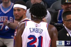 恩比德攤手聳肩抱怨布克犯規!后者嗆聲后直接離場:全是球尼格!
