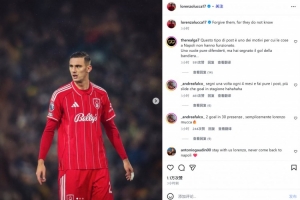 他也在賽后通過社媒曬出比賽照紀念,但他同時配文:“原諒他們吧,因為他們不懂。”這也被解讀為盧卡在暗諷那不勒斯不重用自己,那不勒斯球迷群情激奮。