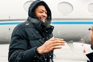 濃眉來到了球隊主場,參觀了更衣室,進行了定妝照拍攝。從照片中可以看到,濃眉的受傷依然還帶著護具。