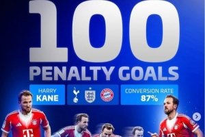德轉(zhuǎn)數(shù)據(jù)統(tǒng)計顯示,凱恩也就此達成了俱樂部+國家隊生涯點球100球里程碑,命中率為87%。