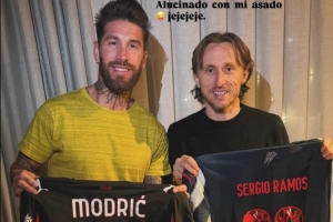 拉莫斯社媒曬出與莫德里奇交換球衣的照片,并配文:“見到你總是無比開心,我的兄弟盧卡·莫德里奇,愿我們還有更多這樣的美好時光。我的烤肉簡直太棒了,哈哈哈。”