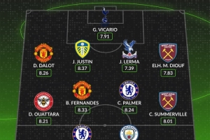 后衛(wèi):達(dá)洛特(曼聯(lián),8.26分)、賈斯汀(利茲聯(lián),8.37分)、萊爾馬(水晶宮,7.39分)、迪烏夫(西漢姆聯(lián),7.83分)