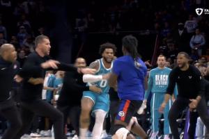 體育資訊02月10日訊 NBA常規(guī)賽,活塞vs黃蜂,杜倫、迪亞巴特、小橋、斯圖爾特?fù)]拳相向被驅(qū)逐。