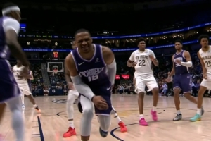 GIF-威少崴腳本來前場球,鵜鶘挑戰(zhàn)失敗補(bǔ)吹了瓊斯犯規(guī),威少獲得兩罰,全部命中繼續(xù)打