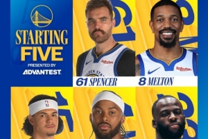 賽前勇士官方更新了本場球隊首發(fā):斯潘塞、梅爾頓、桑托斯、穆迪、追夢。