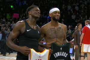 賽后,愛德華茲與前隊友亞歷山大-沃克互換球衣并合影。