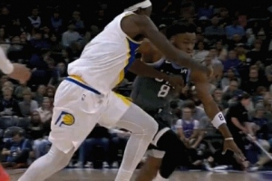 GIF-科利爾運球出界,裁判吹爵士球權;步行者利用第5個暫停挑戰球權,好在挑戰成功,拿回暫停和球權