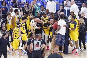 “你為那座城市付出了一切,當然,我足夠年長,還記得他們上次進總決賽是什么時候。當時他們對陣奧尼爾和科比。所以看到雷吉·米勒一路支持著你們,你在東部決賽絕殺后在花園球館做出鎖喉的經典慶祝動作,我認為那超級酷。”