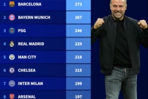 弗里克接手巴薩后的五大聯賽球隊各項賽事進球榜: