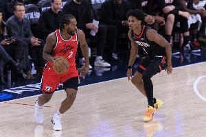 快船送走哈登和祖巴茨后變為了一支以小卡為絕對單核的球隊,鄧恩和瓊斯能防但遠投被放空,大洛年紀大了臨場發揮很吃狀態,桑德斯9中1、馬瑟林13中4,替補席也就米勒還能看——小卡被包夾,其他人大空位訓練依舊打不死人。