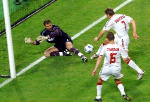 舍甫琴科:“沒有,那全是胡扯。在職業球隊里不會發生這種事。發生的一切都是足球的一部分,有時你找不到原因。我有兩次機會,杜德克做出了超神撲救,之后我們有6分鐘完全斷電。他們的門將對我創造的奇跡我至今無法解釋,我的射門已經做到了最好,球本可以進卻沒進,這就是生活的一部分。我三四個月沒睡著覺,那是沉重的打擊。”