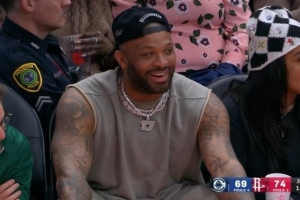 體育資訊2月11日訊 NBA常規(guī)賽,火箭102-95擊敗快船。此役前火箭球員PJ·塔克現(xiàn)場觀戰(zhàn)。