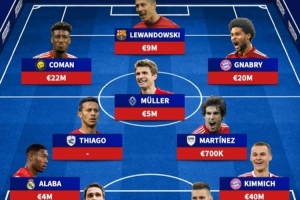 后衛:阿拉巴(皇馬,400萬)、胡梅爾斯(退役)、聚勒(多特,500萬)、基米希(4000萬)