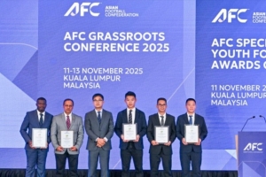 北京時間11月11日,2025年亞足聯草根足球大會及“2025亞足聯草根足球特殊貢獻獎”頒獎儀式在馬來西亞吉隆坡隆重召開。由中國足球協會推薦的譚杰榮獲“2025亞足聯最佳草根足球領導者獎”,青苗聯賽摘得“2025亞足聯草根足球最佳賽事獎”,為中國草根足球贏得國際贊譽。