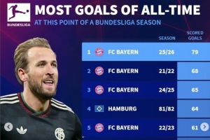 體育資訊2月12日訊 拜仁本賽季在孔帕尼帶領(lǐng)下在各條戰(zhàn)線高歌猛進(jìn),21輪聯(lián)賽已狂轟79球。《轉(zhuǎn)會(huì)市場(chǎng)》統(tǒng)計(jì)顯示他們也是同期進(jìn)球最多的德甲球隊(duì)。