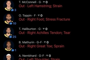 這場(chǎng)比賽堪稱超級(jí)殘陣,一共七名球員缺陣,分別是哈利伯頓、馬瑟林、托平、內(nèi)姆哈德、麥康納、卡梅隆-瓊斯和麥克朗。