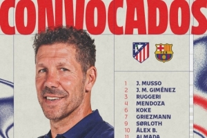 體育資訊2月12日訊 北京時間明天凌晨,馬競將在國王杯半決賽首回合比賽中主場對陣巴薩,馬競公布了此役的球員名單。卡爾多索、巴里奧斯缺席。