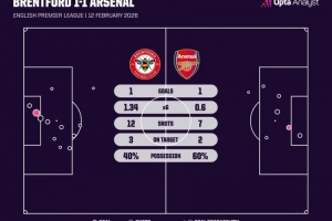 體育資訊2月13日訊 本輪英超焦點戰,布倫特福德1-1戰平阿森納,延續了近期出色勢頭。