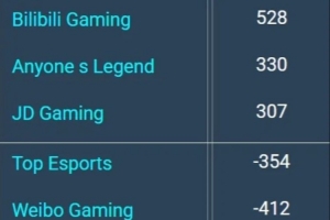 體育資訊2月13日訊 外網(wǎng)數(shù)據(jù)網(wǎng)站統(tǒng)計LPL第一賽段常規(guī)賽登峰組隊伍前15分鐘經(jīng)濟差:BLG第一528。