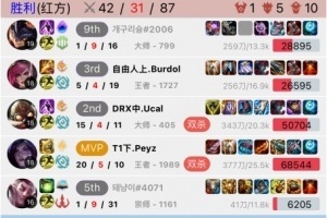 體育資訊2月13日訊 根據韓服排位統計小程序顯示,Peyz昨日在韓服排位中偶遇GEN上中野,Peyz操刀卡莎直接殺穿GEN上中野帶隊取勝!