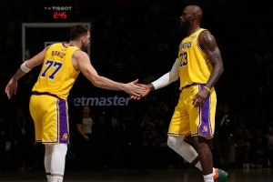 至此,湖人在全明星賽前的戰(zhàn)績?yōu)?3勝21負,排名西部第五。