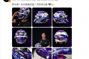 周冠宇今日在社媒曬出新隊服,并寫道:“新頭盔!依舊是青花瓷 / 天際線主題 ?? ”
