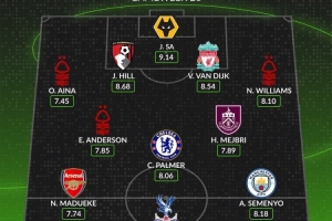 whoscored本輪英超最佳陣: