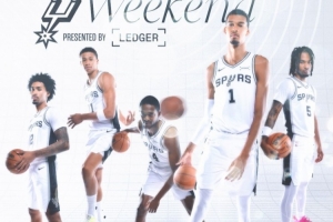 馬刺官推曬出隊內(nèi)五名球員參加全明星周末的海報:
