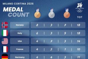 2026米蘭冬奧會獎牌榜: