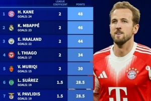 體育資訊2月14日訊 德轉盤點了截至目前歐洲金靴獎積分情況,其中凱恩、姆巴佩與哈蘭德排名前三且差距很小,具體如下: