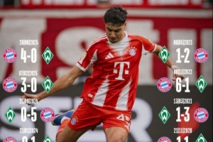 在雙方近10次對陣中,拜仁戰績8勝1平1負優勢明顯,其中近3場比賽更是分別以4-0、3-0以及5-0的大比分取勝。