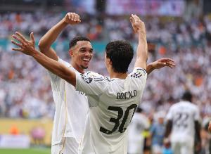 體育資訊2月15日訊 西甲第24輪,皇家馬德里主場迎戰皇家社會,比賽第6分鐘,阿諾德精妙傳中助攻,貢薩洛破門,皇馬1-0領先。