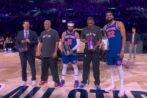 體育資訊2月15日訊洛杉磯全明星單項賽今日進行,第二項比賽是投籃之星,決賽由卡梅隆隊對陣尼克斯隊,率先登場的卡梅隆隊神準命中3記四分球拿下38分,頂住壓力的尼克斯隊表現更加兇猛,他們各種狂轟亂炸直接搶下47分奪冠。