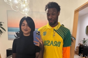 布朗尼曬出他和女友的自拍合影,并寫道:“情人節快樂??????????”