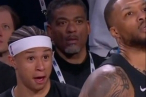 比賽中利拉德出戰時,馬刺新秀卡特·布萊恩特被利指導神準的投射發揮驚出了表情包,畫面非常有喜感。