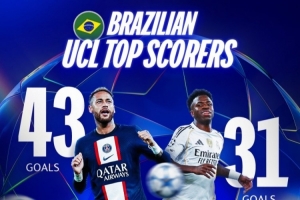 據(jù)歐冠官方統(tǒng)計,維尼修斯職業(yè)生涯至今在歐冠比賽中打進31球,超越卡卡(30球),巴西球員之中僅少于內(nèi)馬爾(43球)。