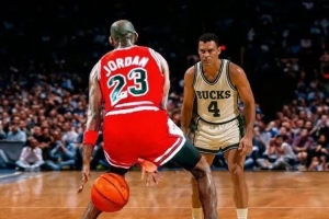 假設你坐在更衣室里,你剛套上一件球衣,看著對手公牛隊的錄象,一邊整理鞋帶。教練推門進來,對你說,“今天由你防守……”你最怕聽到的名字是什么呢?當教練嘴唇慢慢擠出“邁克爾”這個開頭時,你會不會覺得眩暈?