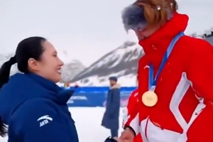 頒獎儀式上,國際奧委會委員張虹為他頒發了這枚金牌。張虹曾在2014年索契冬奧會女子速度滑冰1000米比賽中,為中國速度滑冰實現冬奧金牌零的突破。兩代冬奧傳奇同框,也見證著中國冰雪運動的傳承與突破。