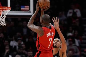 在談到杜蘭特時,范弗里特表示:“KD本賽季改變了我看待籃球的所有方式。因為對他來說,一切看起來都太輕松了。他真的很放松,從來不亂來,就是等著機會。他可以幾分鐘都摸不到球,也不說話,就站在底角。然后只要他有機會出手,就不會投丟。他真的不怎么投丟。”