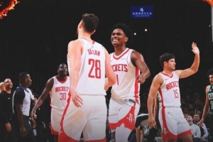 賽后,火箭發布3連勝贏球海報,申京+阿門慶祝登上封面,謝潑德和卡佩拉也入鏡。