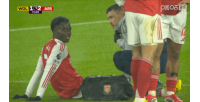 比賽第72分鐘,薩卡坐在地上疑似出現傷情,1分鐘后他被特羅薩德換下。