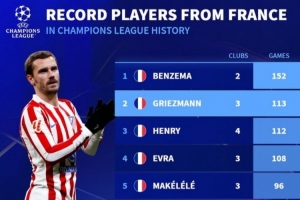 體育資訊2月19日訊 馬競(jìng)在本輪歐冠3-3戰(zhàn)平布魯日,格列茲曼在歐冠出場(chǎng)數(shù)也超越亨利,成為法國(guó)球員歷史第二人。