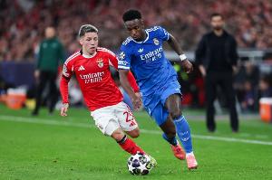 體育資訊2月20日訊 歐冠1/8決賽附加賽首回合,皇家馬德里客場1-0擊敗本菲卡,維尼修斯打進全場唯一進球。但在進球后雙方爆發沖突,維尼修斯向主裁判投訴遭到種族歧視,比賽一度暫停。
