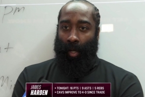 體育資訊2月20日訊 NBA常規賽,騎士以112-84戰勝籃網。賽后,哈登接受了媒體的采訪。